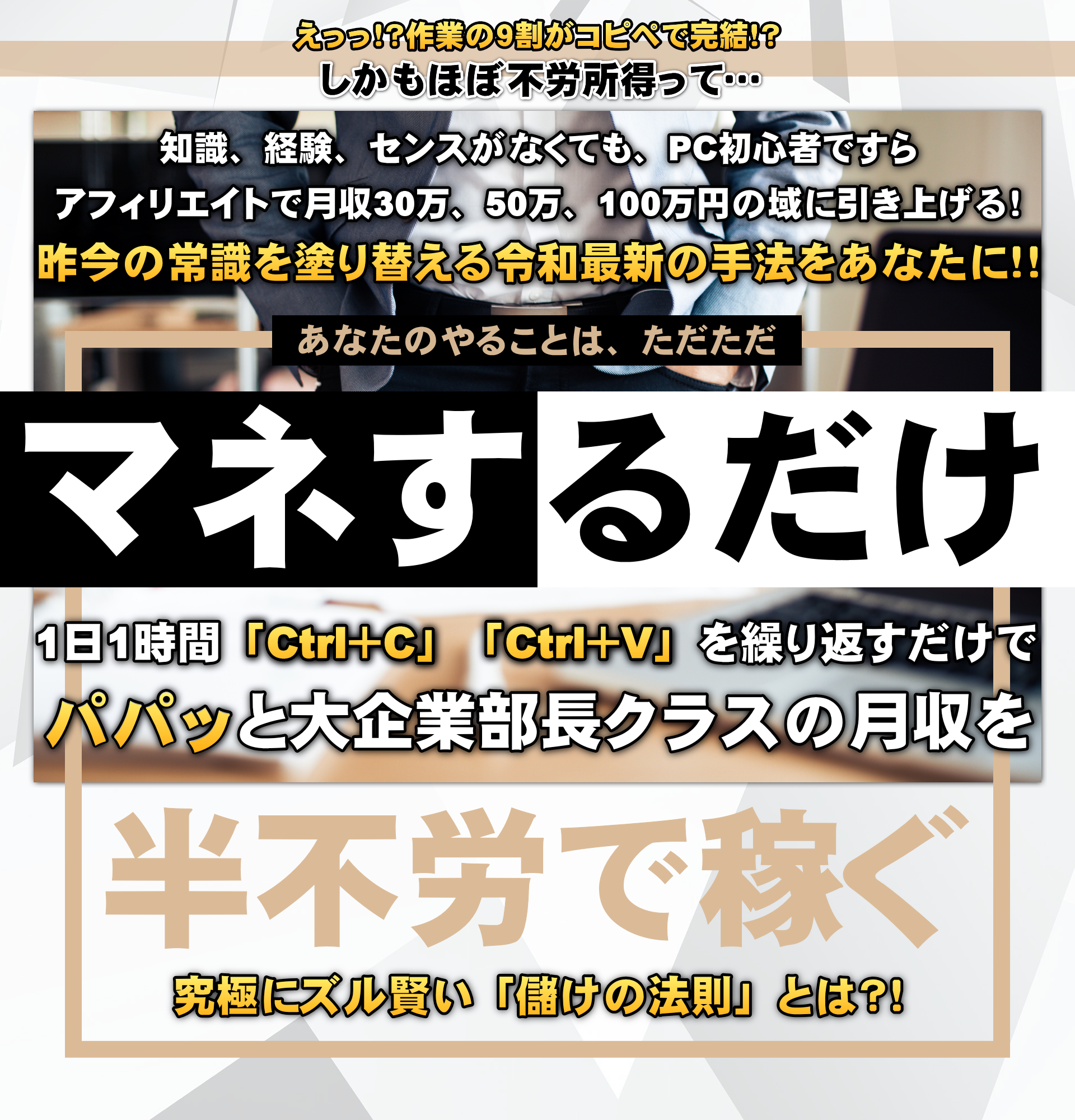 しかし当Revelation Affiliateでは、あくまで主にコピペの繰り返しという前提のもと、時間と労力を掛けずに月収100万円に到達することが可能になっています。